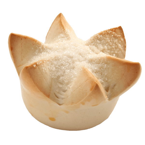 A lean type of bread with six cuts on the surface forming a flower-like appearance and topped with refined sugar.