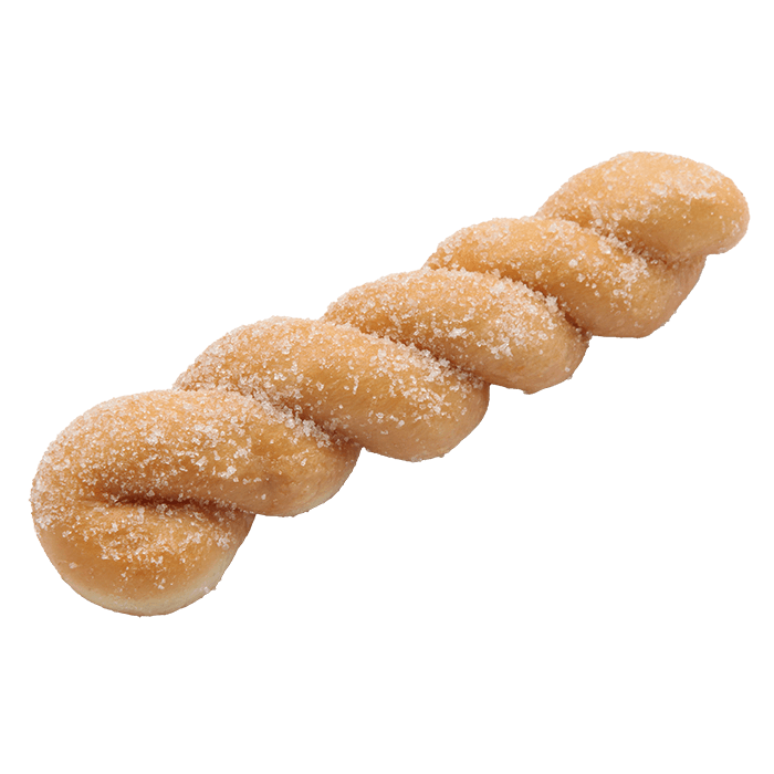 A twisted doughnut coated with refined sugar. It has slightly fermented-creamy flavor and taste.